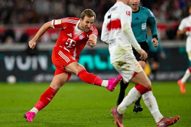 凯恩并没有从一开始就首发,而是在比赛的第60分钟替换下杰克逊登场。仅过了6分钟,凯恩在禁区前接到传球后,用右脚低射破门,皮球紧贴草皮飞进了死角。到了第80分钟,奥利塞突入禁区后的一脚左脚劲射被斯图加特的阿西格农用手臂挡出,裁判判定犯规并给了阿西格农一张红牌,随后凯恩主罚点球,一蹴而就,完成了自己的第二粒进球。比赛进行到第88分钟,奥利塞在右路送出横传,凯恩在小禁区内轻松推射破门,顺利完成了帽子戏法。这也是凯恩职业生涯第二次在对阵斯图加特时上演帽子戏法。上赛季,他在主场对阵斯图加特时也曾完成过这一壮举。此次比赛是凯恩本赛季21场比赛中打入的第27球,同时也是他参与的第30个进球。仅用了76场德甲比赛,凯恩便已打入79球,参与100个进球。此外,这也是凯恩本赛季德甲13场比赛中的第17个进球,他依旧稳居德甲射手榜的首位。在五大联赛的射手榜上,凯恩以17球排名第一,超越了打入16球的姆巴佩,而哈兰德则以15球位居第二。